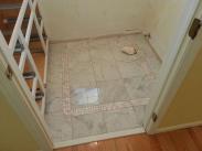 After removing the old toilet and installing the new vanity, it's time for tile work